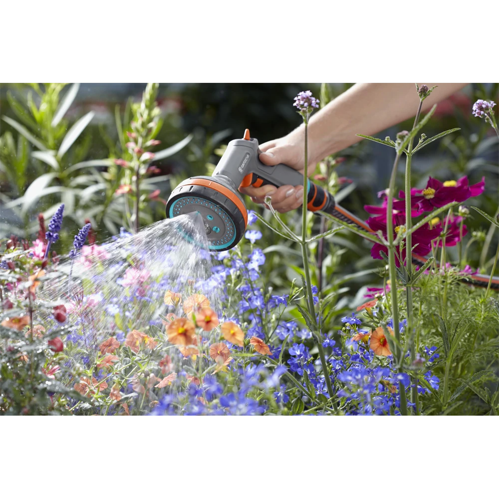 De Gardena comfort multi broes is ideaal voor diverse bewaterings- en reinigingsklussen. Bij deze broes is de waterstraal instelbaar in vijf standen. De nevelstraal is perfect voor het bewateren van zaaigoed. De zachte straal of broesstraal zorgt ervoor dat de bloembedden goed kunnen worden bewaterd. De harde straal is voor reinigingswerkzaamheden. De softgrip componenten zorgen voor een slipvaste grip op de comfort multibroes. De ergonomisch vormgegeven impulshendel kan met de geïntegreerde knop worden vastgezet. De waterstraal is met 1 vinger traploos in te stellen. Een geïntegreerd filter zorgt er voor dat er geen vuil in de broes zelf kan komen. Dit filter kan eenvoudig worden losgehaald en gereinigd. De broes is vorstbestendig en daardoor ook bestand tegen temperaturen onder het vriespunt.
