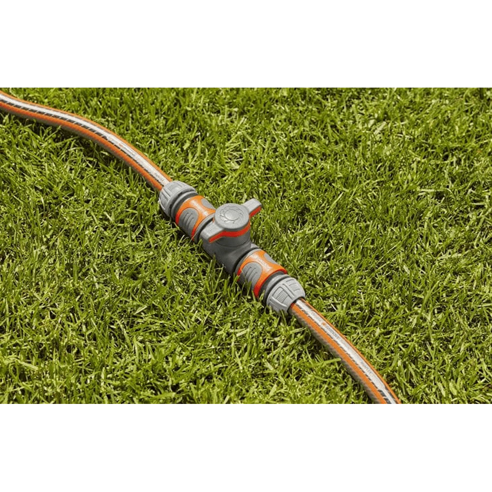 Met de Koppeling met reguleerventiel van GARDENA krijg je nieuwe mogelijkheden aangereikt om je tuin te sproeien. Maar deze kleine handige helper is er vooral om het werk makkelijker te maken. Met het ventiel kun je de waterdoorvoer makkelijk regelen of helemaal afsluiten. Wanneer de waterdoorvoer is afgesloten, kun je ter plekke de koppeling verwisselen en doorgaan met het sproeien van je tuin, zonder dat je naar de kraan hoeft te lopen om deze dicht te draaien. Ideaal om aan een sprinkler te koppelen. Door de waterdoorvoer te regelen kun je het bereik van de sproeier naar wens aanpassen. De adapter is UV- en vorstbestendig en kan dus het hele jaar worden gebruikt. De Koppeling met reguleerventiel is een echt kwaliteitsproduct, gemaakt in Europa. GARDENA geeft vijf jaar garantie ter ondersteuning van deze topkwaliteit. Das Original GARDENA System.