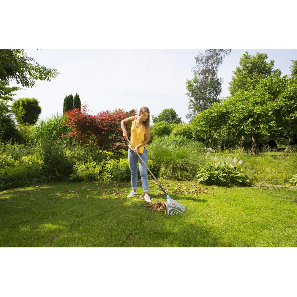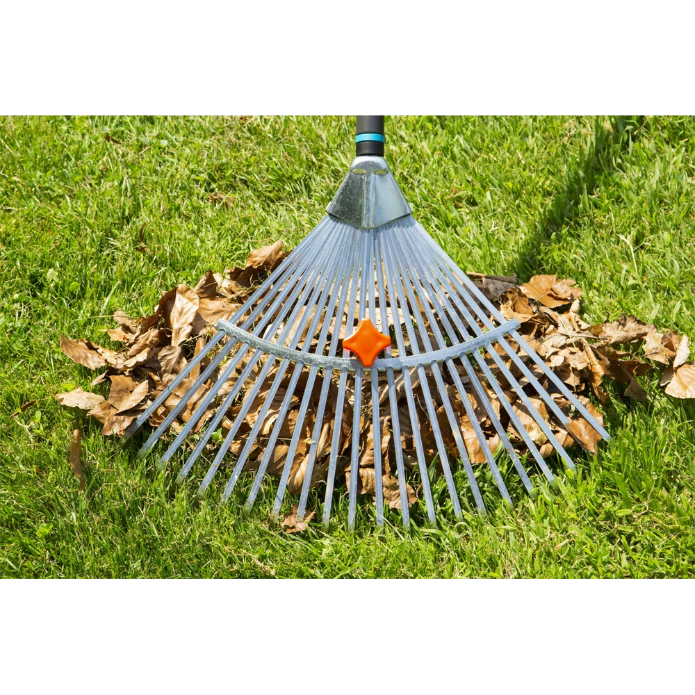 De GARDENA NatureLine Verstelbare Bladhark is perfect voor het opruimen van bladeren, grasresten en ander tuinafval. Om zowel fijn als grof materiaal te kunnen harken, kunnen de gegalvaniseerde stalen tanden eenvoudig tussen 30 en 50 cm worden versteld. De gelakte steel van beukenhout (FSC®-gecertificeerd) vormt een vaste en solide verbinding met de verstelbare hark – geen gewiebel of kromtrekken.