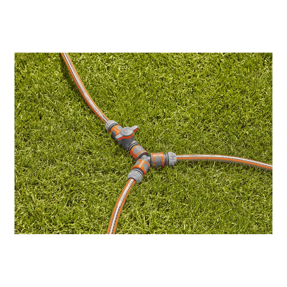 Het Reguleerventiel van GARDENA geeft je meer flexibiliteit wanneer je een 3-wegstuk (afzonderlijk verkocht) gebruikt. Koppel het ventiel aan één van de twee uitgangen van het 3-wegstuk en bent klaar om de waterdoorvoer naar je wens in te stellen, of het zelfs helemaal af te sluiten. Wanneer de waterdoorvoer is afgesloten, kun je ter plekke de koppeling verwisselen en doorgaan met het sproeien van je tuin, zonder dat je het water bij de kraan moet dichtdraaien. Het Reguleerventiel is ideaal voor gebruik in combinatie met een sprinkler omdat je het sproeibereik via de waterdoorvoer helemaal kunt afstellen. De adapter is wintervast en kan dus het hele jaar worden gebruikt. Het Reguleerventiel is een in Europa gemaakt kwaliteitsproduct en GARDENA geeft een garantie van vijf jaar op het Reguleerventiel na registratie binnen 3 maanden na aankoop op GARDENA.com/registration. Das Original GARDENA System.
